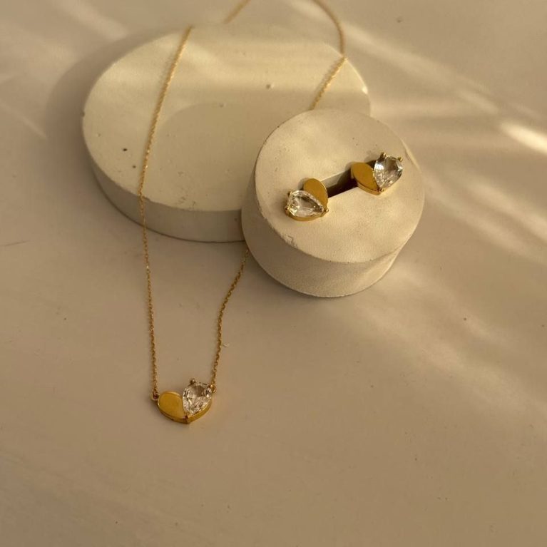نیم ست قلب و اشک نگین سفید
